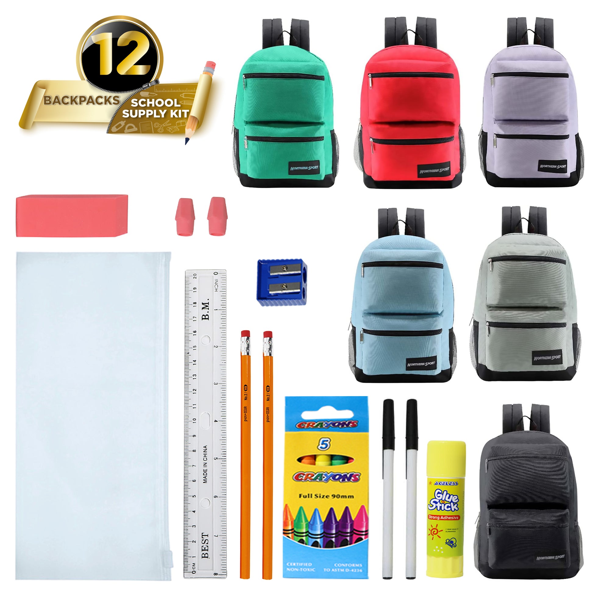 YOU GET: 12 DELUXE 17" BACKPACKS & 12 SCHOOL SUPPLY KITS