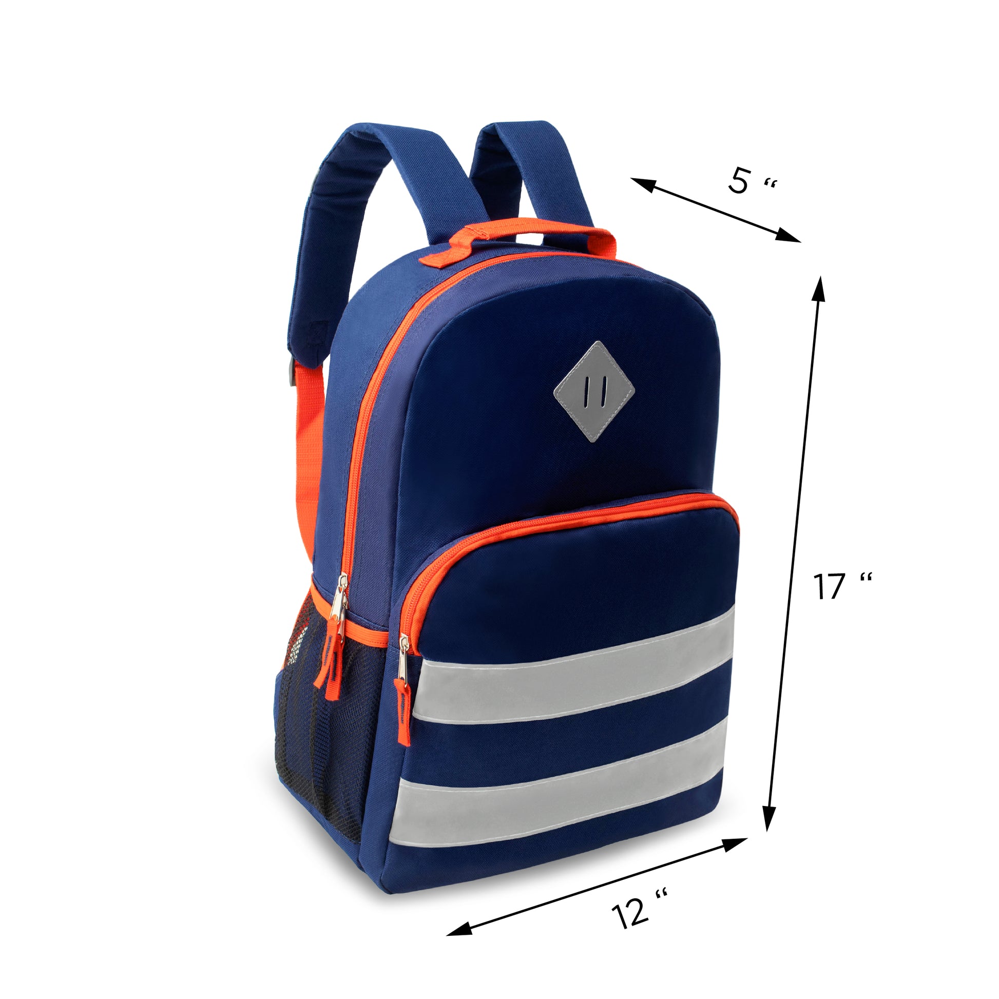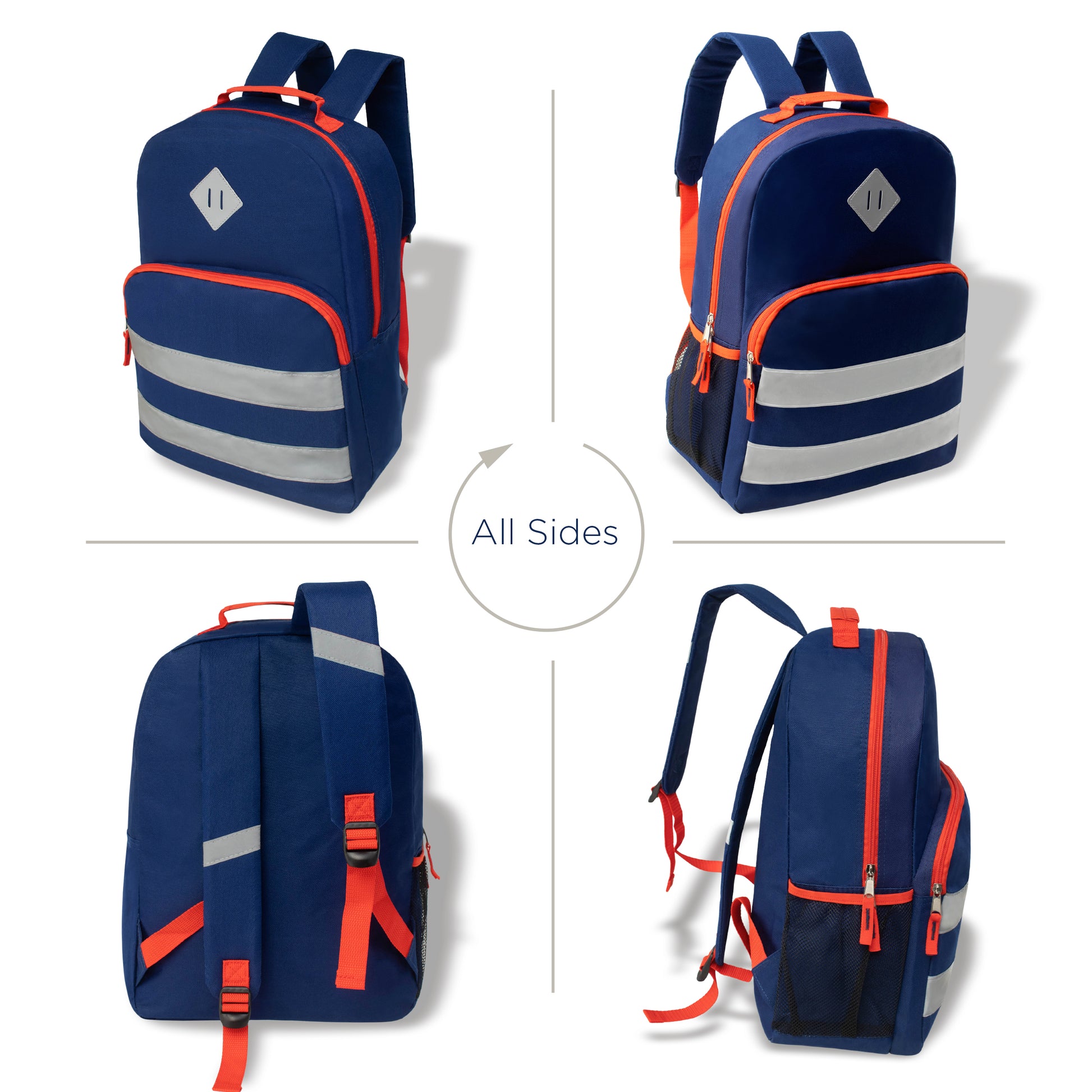 17" Reflective Stripe Wholesale Backpacks in 6 Colors & 12 Bulk School Supply Kits | Choose Your Kit